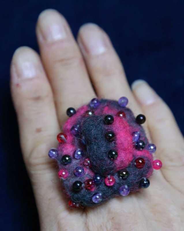 Participant– Collier à boules colorées, en laine feutrée: 15 euros