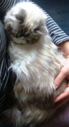 Samantha a quitté sa chambre sécurisée… elle miaulait doucement comme pour me faire venir … elle donnait l’impression de vouloir sortir … alors je lui ai ouvert… et effectivement… elle explore mais revient vite pour le moment … à l’abris… du coup je lui laisse comme un répère et nous faisons connaissance en dehors… nous avons aussi commencé les calins sur les genoux… lle se détend apprécie… le ronron est intérieur pas encore audible quand elle ai dans mes bras… ça va venir…