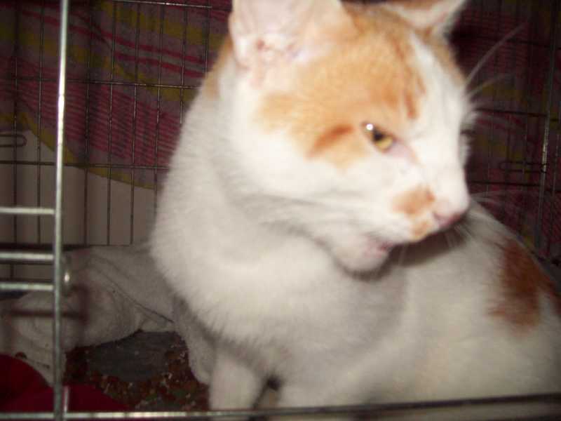c’est un male castré, en bon etat, à part des croutes et des puces, environ 2-3 ans. pas fan des collocataires , vrai qu’il y en a beaucoup, ça fait un choc. mais gentil et calin