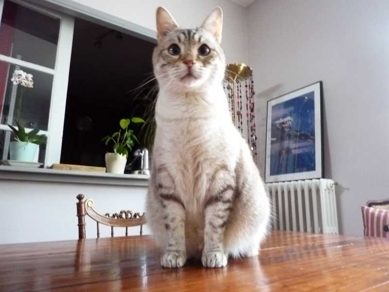« Le bel Aladin, qui c’est vrai est très beau, va très bien, il est couché à coté de moi sur le canapé. Il s’est rendu compte que le voisin avait deux minettes … et le voilà troublé.. manquait plus que ça, les filles l’intéressent .. »